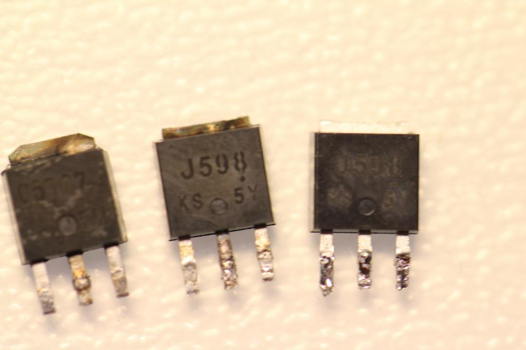Auf der Unterseite sollten auch noch die Transistoren geprüft werden die die FETs ansteuern, da auch diese beschädigt sein können. Bei mir war dies nicht der Fall.