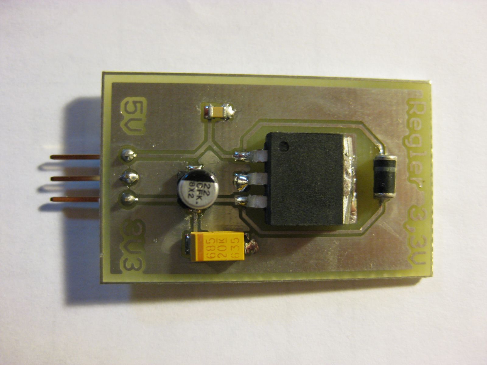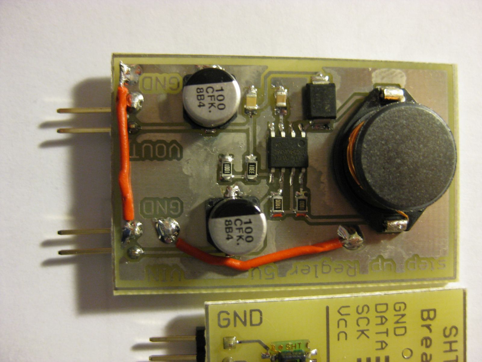 Ich hatte leider noch Fehler im Layout der Schaltregler (unterbrochene Ground-Fläche), daher die zwei Kabel auf den Platinen.