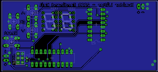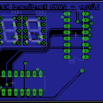 An sich bin ich mit dem Layout ganz zufrieden. Auch wenn es doppelseitig geworden ist, finde ich es so ganz übersichtlich. Und die Mischbestückung ist Absicht: den 74HC595 habe ich noch als DIL auf Lager und den ATtiny möchte ich gerne sockeln.